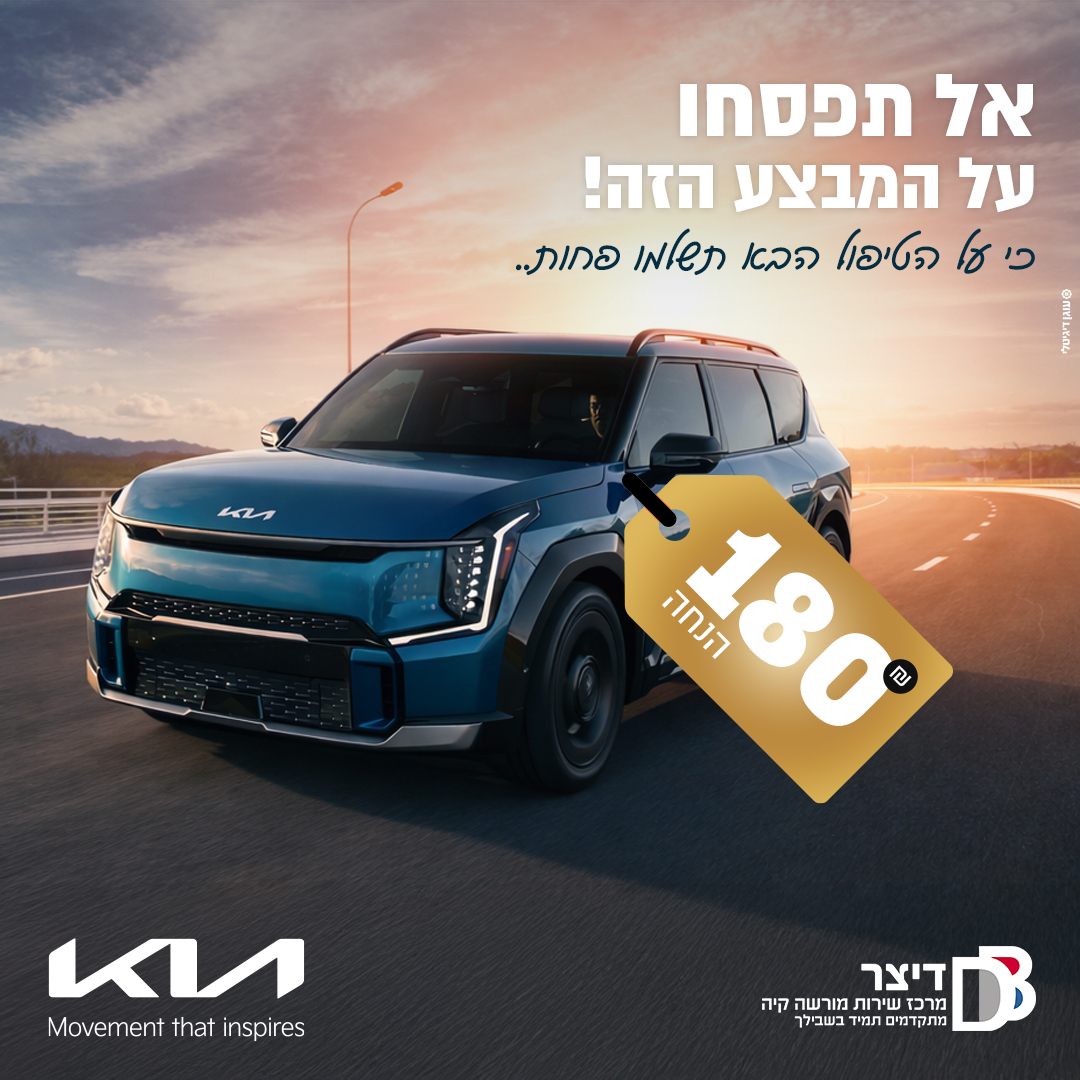 בתוקף עד 01.04.26 | ההטבה למביא מודעה זו | מימוש פעם אחת ללקוח | מגבים קדמיים בלבד | לא כולל רכב חשמלי רכב KGM וקיה ספורטאז׳ החדש | התמונה להמחשה בלבד | ט.ל.ח
